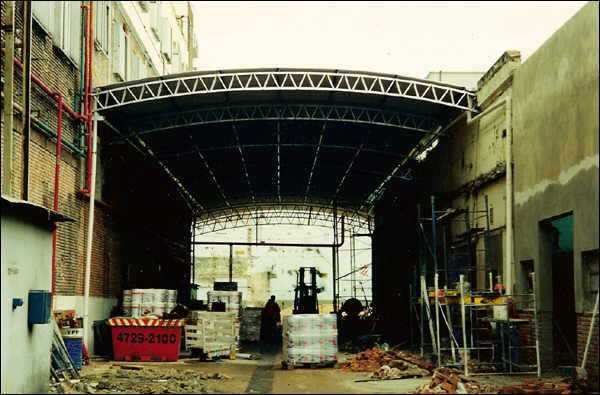 Proyecto, Dirección y Construcción de 1800 m² de movimiento de suelos, pavimentos y estructura metálica. Ejecución de: muro medianero, vestuarios y oficinas, bases para horno rotativo, túneles para evacuación de gases de hornos, 3 tolvas de hormigón armado. Trabajos especiales de Ingeniería: refuerzos de vigas para sacar columnas en galpón central. Obras complementarias de desague pluvial e industrial.