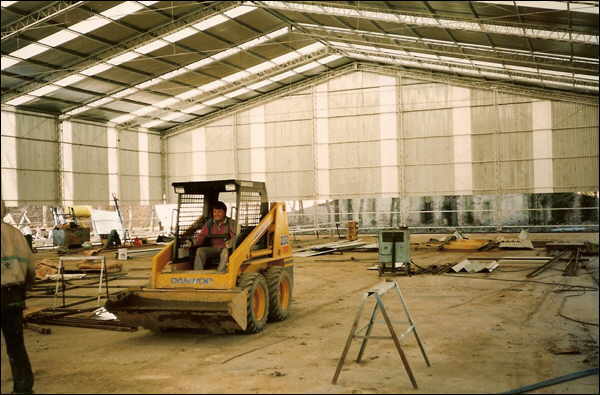 Proyecto, Dirección y Construcción de: 800 m² de movimiento de suelos y pavimentos, 300 m² de estructura metálica. Ejecución de mampostería.