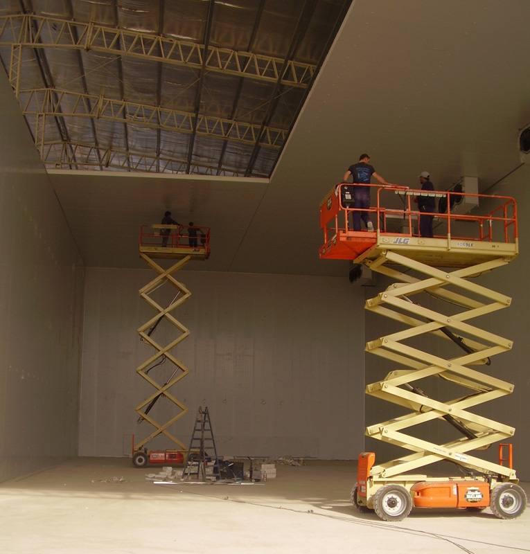 Ejecución de 600 m² de: rotura de piso existente, colocación de sistema de aireación y piso de hormigón con terminación de ferrocemento para cinco cámaras frigoríficas.
