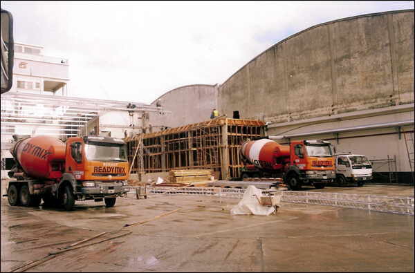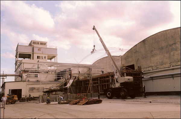 Demoliciones: 200 m² de cáscara de hormigón armado, 650 m3 de demolición de bases, plateas, tabiques de hº aº, depósitos de fuel-oil, cámaras y mamposterías. Hormigón armado: 500 m² de losa, tabiques, rampas y losas varias. Movimiento de Suelos: 5000 m² (desmonte de 1m de profundidad, 30 cm de suelo-cal, 18 cm de suelo-cemento), 1000 m² de saneamiento con cascote picado y tosca. Pavimento de hormigón: 5000 m². Piso de hormigón con terminación de ferrocemento: 8500 m². Fundaciones de equipos: 450 m² de bases para máquinas para cortar cartulina. Estructura metálica.1500 m² de techos.
