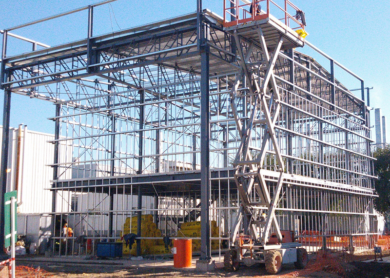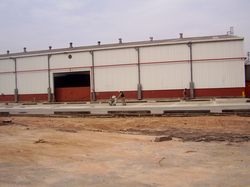 Proyecto, Dirección y Construcción de 5000 m² de estructura metálica, 4300 m² de movimiento de suelos y pavimentos. Construcción de oficinas y sanitarios de fábrica.