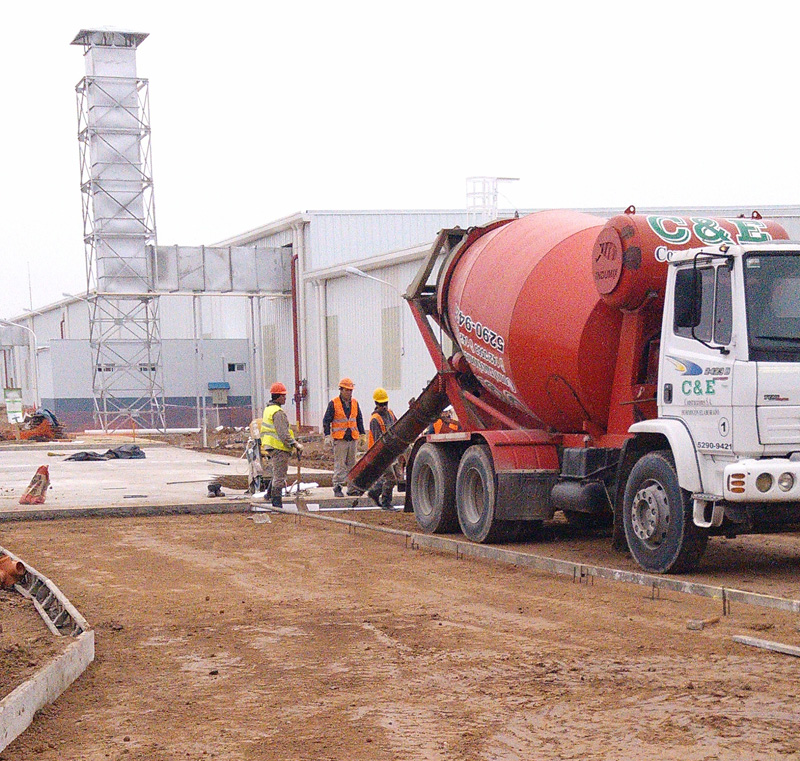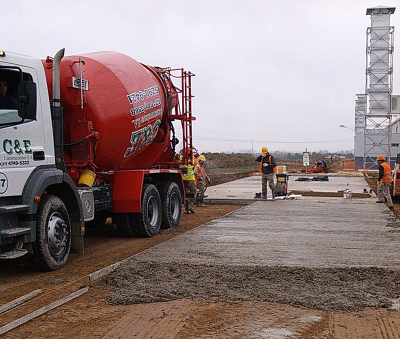 Hormigón armado: 232 m² de losa a 6,50m de altura. 10 Columnas de 8m de altura a 6,50m del nivel de P.Baja. Bases de columna de alumbrado. Canales de desagüe. Movimiento de Suelos: 4500 m² (desmonte y entoscado). Retiro de 90 árboles. Pavimento de hormigón: 4500 m². Bacheo de piso interior de fabrica: 800 m². Desmonte y corrimiento de cerco perimetral. Fabricación y Montaje de planta propia de hormigón elaborado. Provisión de 1000 m3 de hormigón elaborado.