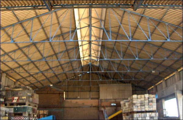 Obra – Movimiento de Suelo y Piso Industrial: Ejecución de 200 m2, rotura de pavimento existente, excavación, aporte de tosca y compactación, suelo-cemento al 8 %. Terminación en llaneado de ferrocemento. Obra Civil. Construcción de tres bases para máquina impresora de 80 m2. cada una. Pintura de piso adyacente en epoxi. Demolición de estructura de hormigón en Deposito Cartón. Obra y Proyecto – Estructura Metálica. Ejecución de 450 m2 de estructura metálica para galpón, 145 m2 de cerramiento vertical, 595 m2 de aislación térmica y 5 aireadores eólicos.