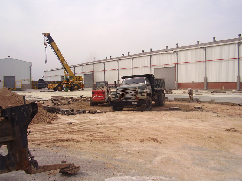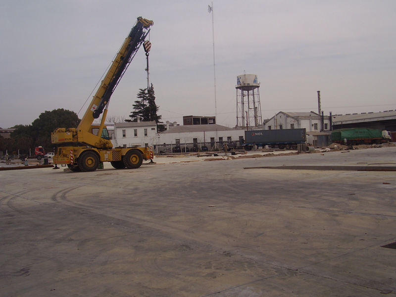 Ejecución de: 3700 m² de movimiento de suelos y pavimento, 200 m² de estructura de hormigón armado. Oficinas de administración. Instalaciones eléctricas y sanitarias. Ejecución de muro medianero.