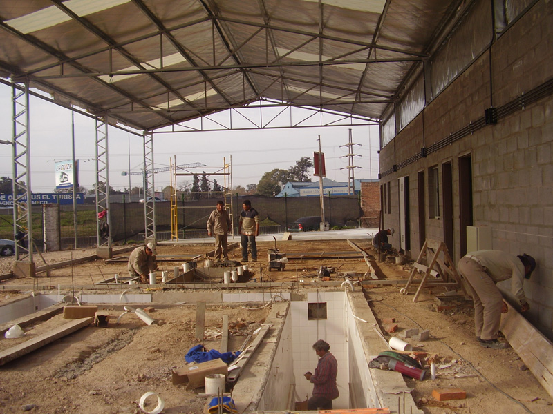Construcción de taller de autoelevadores. Instalaciones de gas, aire comprimido y eléctrica. Estructura metálica y de hormigón armado. Demoliciones varias. Construcción de pileta de hormigón armado para desborde de productos químicos. Desagües y cámara receptoras para tratado de efluente. Ejecución de 300 m² de movimiento de suelos y de pavimento de hormigón. Ejecución de 1500 m² de bacheo de pavimento de hormigón.