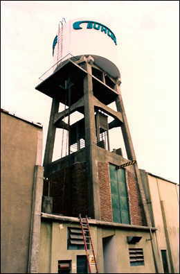 Revestimiento de tanque de agua y colocación de cartel de fábrica.